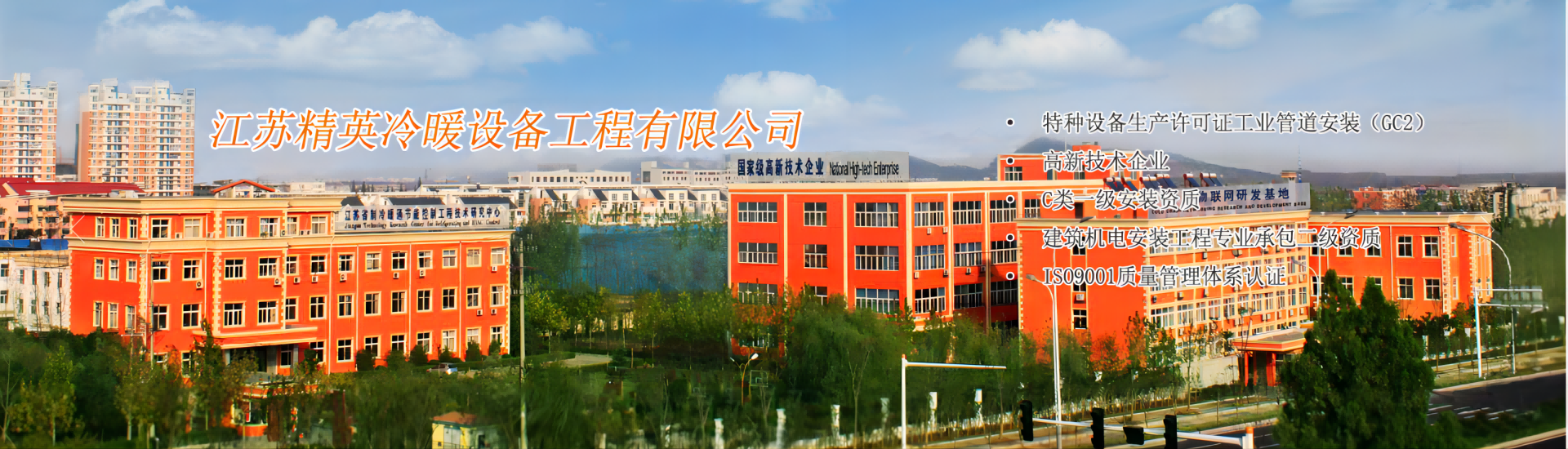 江蘇精英冷暖設(shè)備工程有限公司位于江蘇省徐州高新技術(shù)產(chǎn)業(yè)開發(fā)區(qū)第二工業(yè)園昆侖路14-2號,為高新技術(shù)企業(yè),公司擁有ISO9001質(zhì)量管理體系認(rèn)證、ISO14001環(huán)境管理體系認(rèn)證、ISO45001職業(yè)健康安全管理體系認(rèn)證、工業(yè)管道安裝(特種設(shè)備安裝、修理、改造)GC2資質(zhì)、建筑機(jī)電安裝工程專業(yè)承包貳級資質(zhì)、安全生產(chǎn)許可證、C類I級安裝資質(zhì)、農(nóng)機(jī)補(bǔ)貼定點(diǎn)企業(yè)及制冷設(shè)備國家標(biāo)準(zhǔn)《GB/T18430.2-2008》、《藥品冷鏈物流運(yùn)作規(guī)范》、《冷鏈物流分類與基本要求》的起草單位等資質(zhì)。